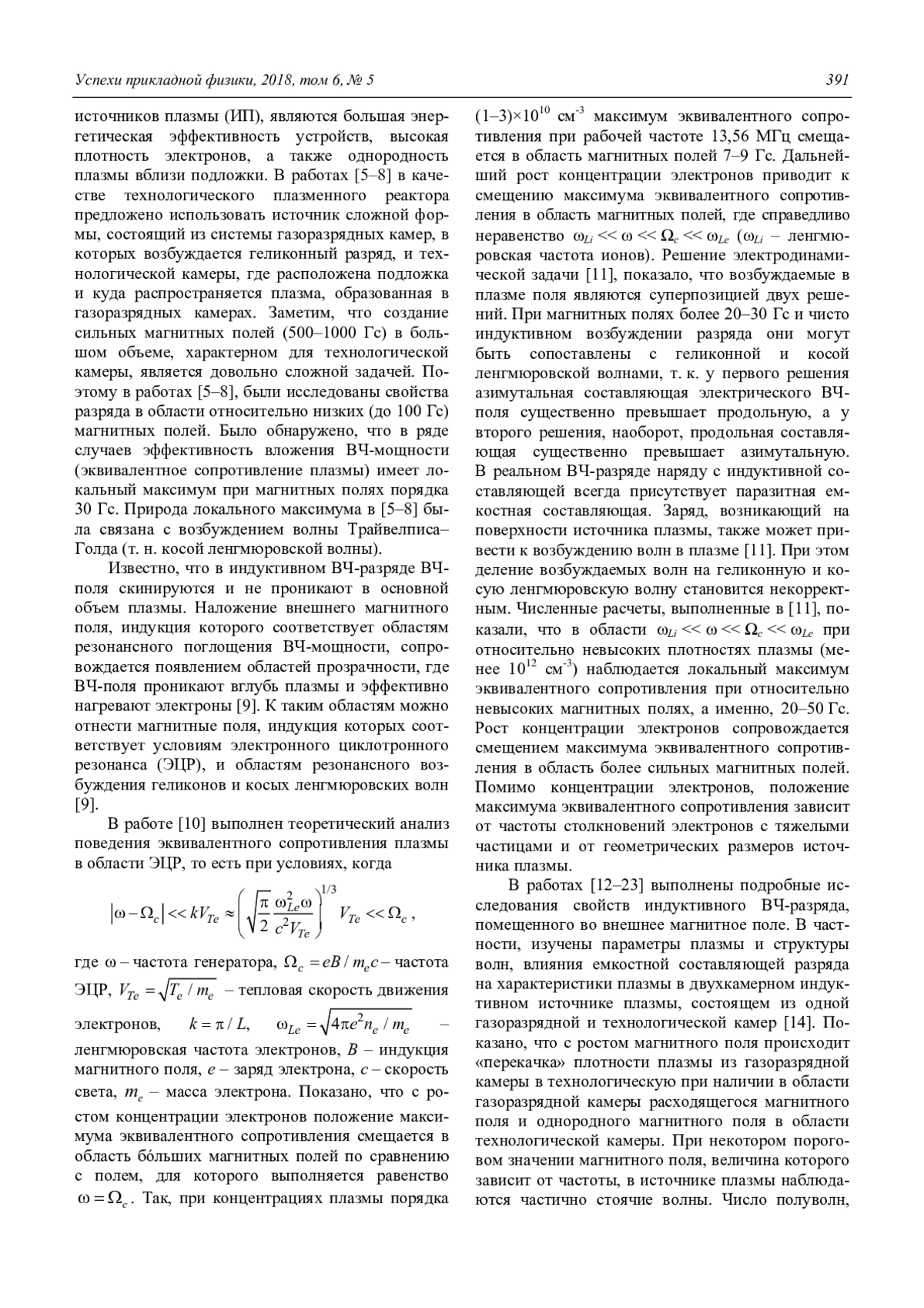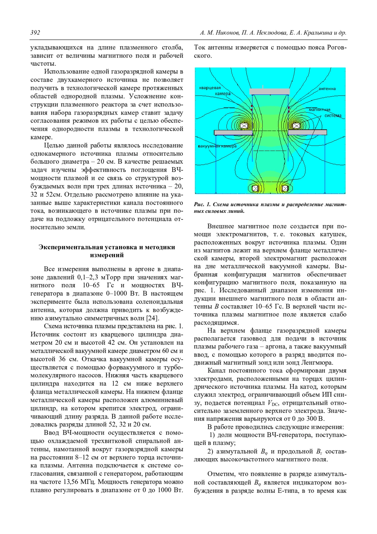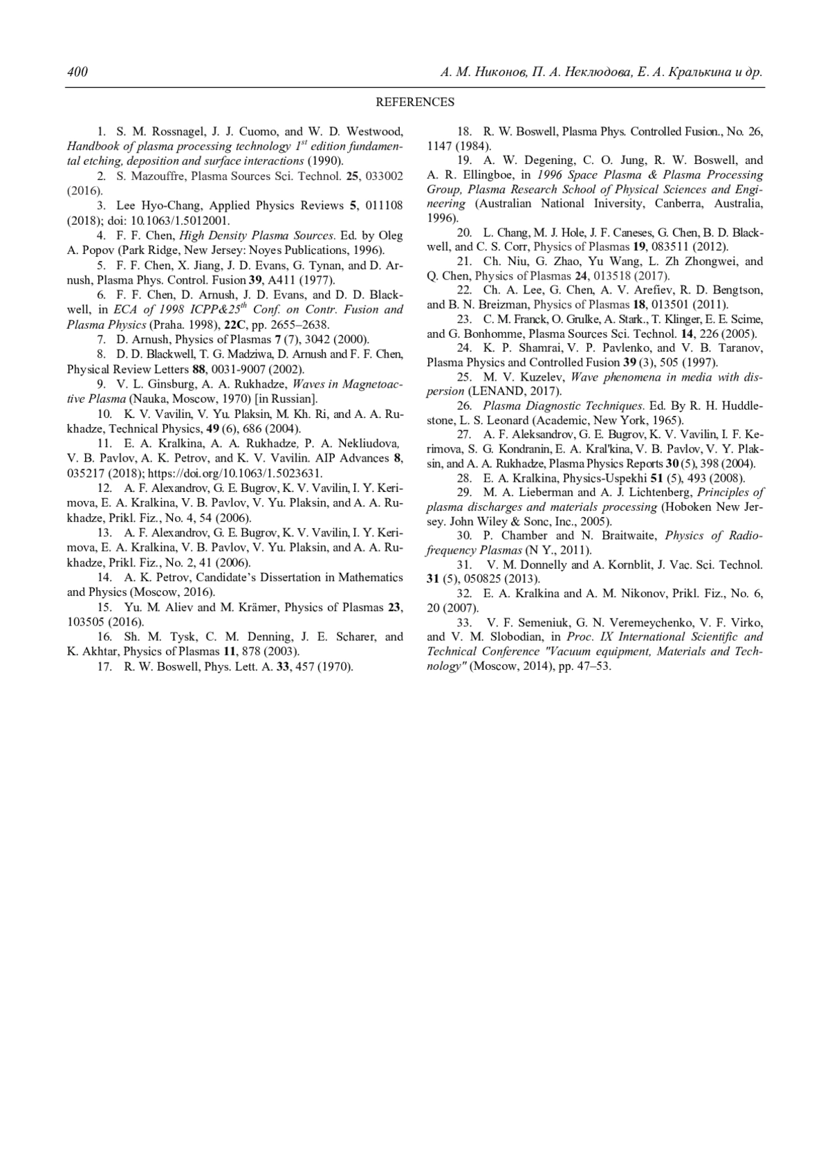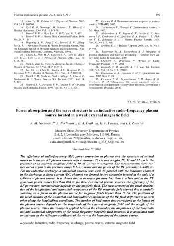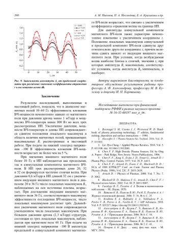 Никонов А. М., Неклюдова П. А., Кралькина Е. А., Вавилин К. В., Задириев И. И. Поглощение мощности и волновая структура, возникающие в индуктивном высокочастотном источнике плазмы, помещенном в слабое внешнее магнитное поле 390