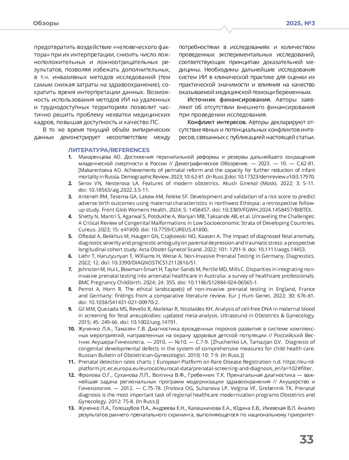 1. Макаренцева АО. Достижения перинатальной реформы и резервы дальнейшего сокращения младенческой смертности в России // Демографическое Обозрение. - 2023. - 10. - С.62-81.