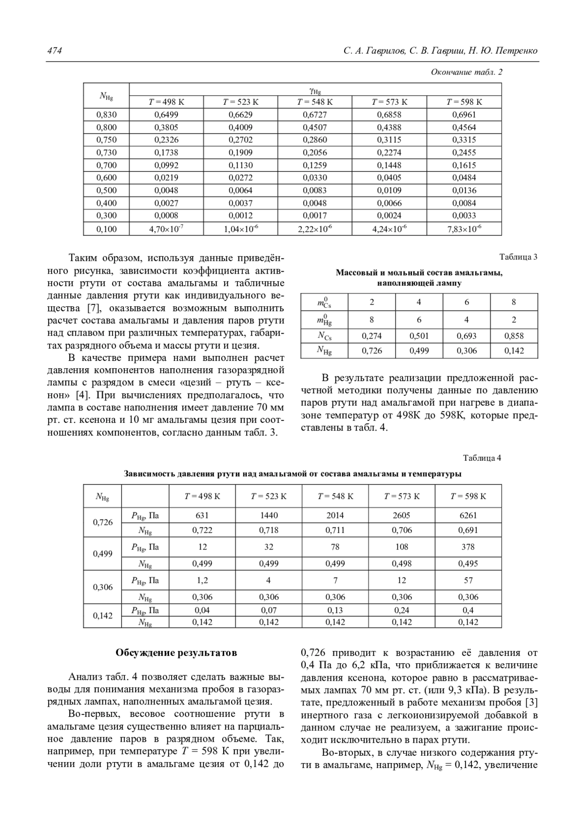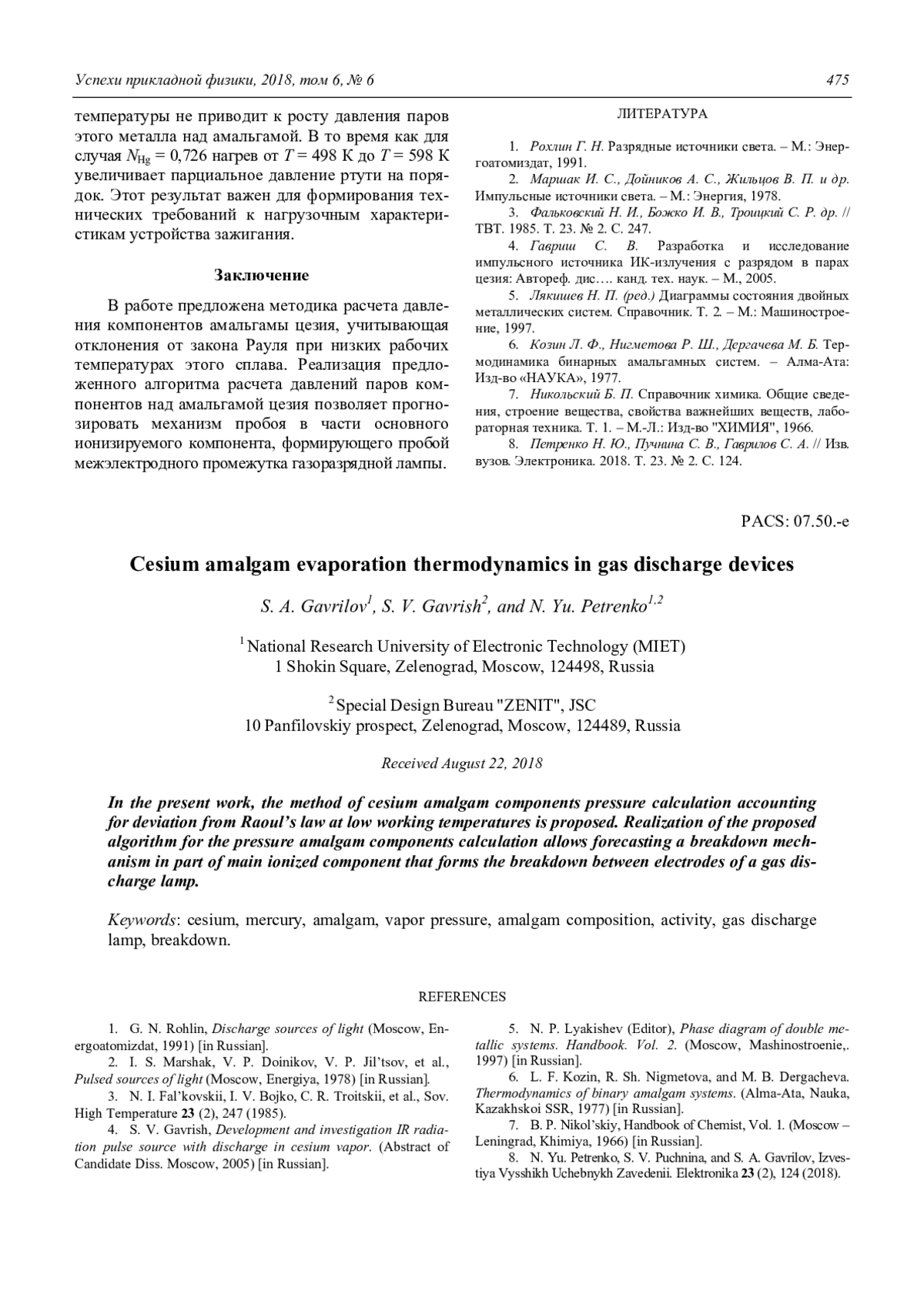 Гаврилов С. А., Гавриш С. В., Петренко Н. Ю. Термодинамика испарения амальгамы цезия в газоразрядных приборах 471