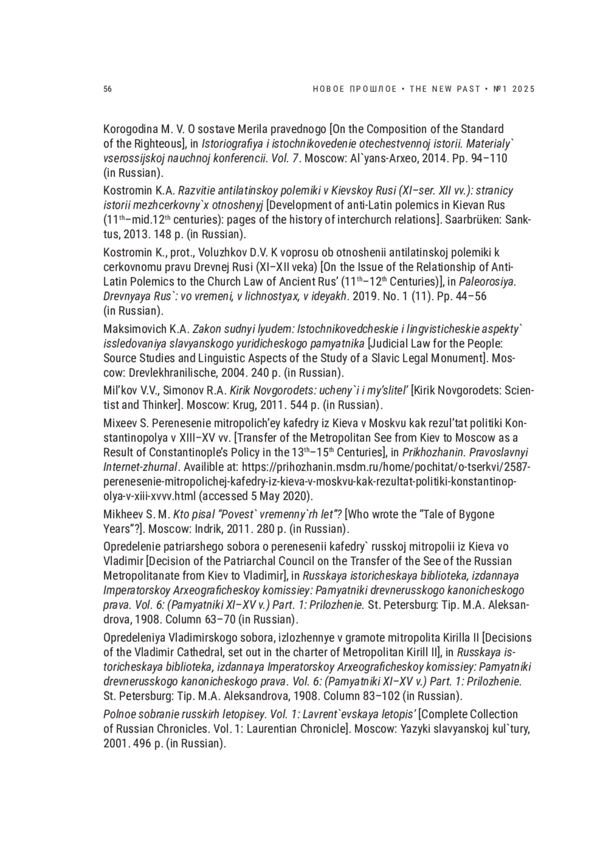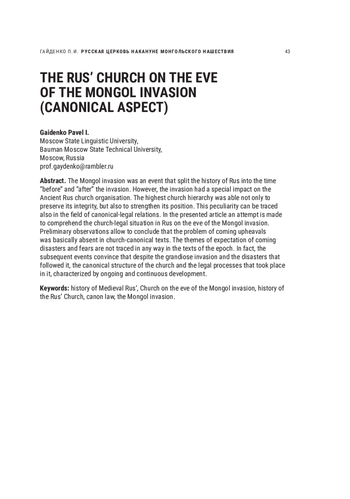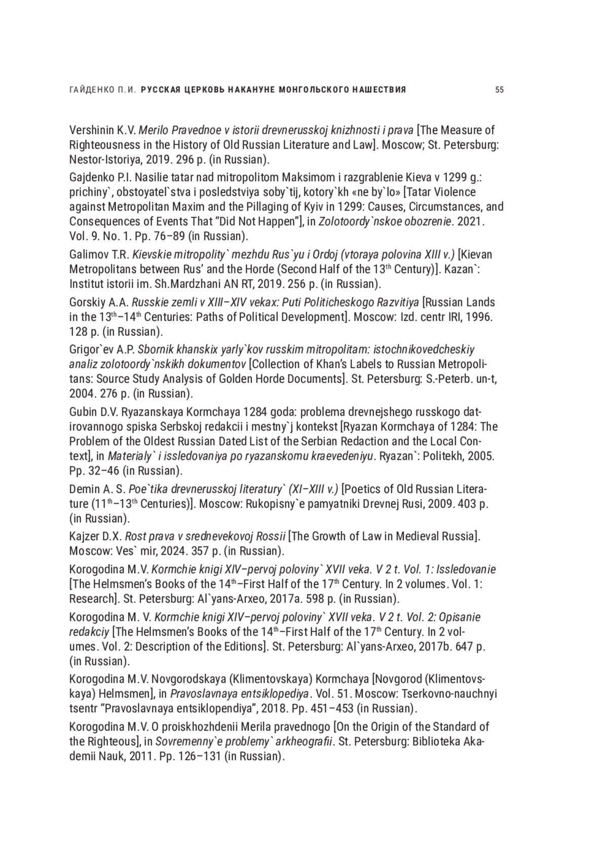 ГАЙДЕНКО П. И. РУССКАЯ ЦЕРКОВЬ НАКАНУНЕ МОНГОЛЬСКОГО НАШЕСТВИЯ (КАНОНИЧЕСКИЙ АСПЕКТ) // НОВОЕ ПРОШЛОЕ. 2025. № 1