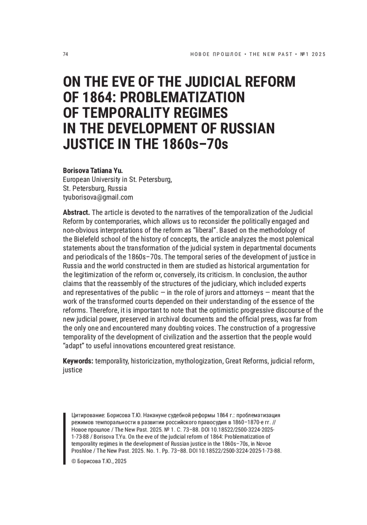 74. Borisova Т., Burbank J. Russia’s legal trajectories, in Kritika: Explorations in Russian and Eurasian History. 2018. Vol. 19. No. 3. Pp. 469-508. EDN: YBYITR