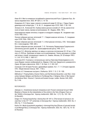 17. Kezha Y.N. Mesta knyazheskih pogrebenij v domongol’skoj Rusi [Places of princely burials in pre-Mongol Rus’], in Drevnyaya Rus’. Voprosy medievistiki. 2022. No. 1(87). Pp. 16-35 (in Russian).