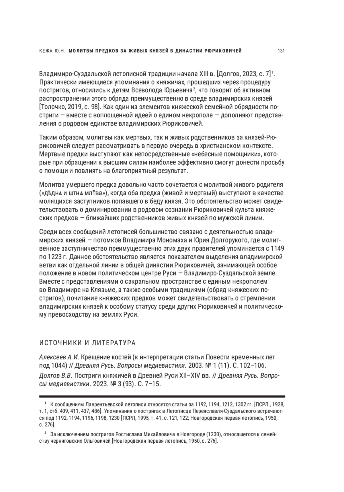 2. Долгов В.В. Постриги княжичей в Древней Руси XII-XIV вв. // Древняя Русь. Вопросы медиевистики. 2023. № 3 (93). С. 7-15. EDN: KHCBMF