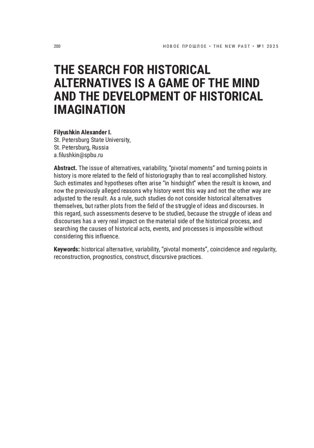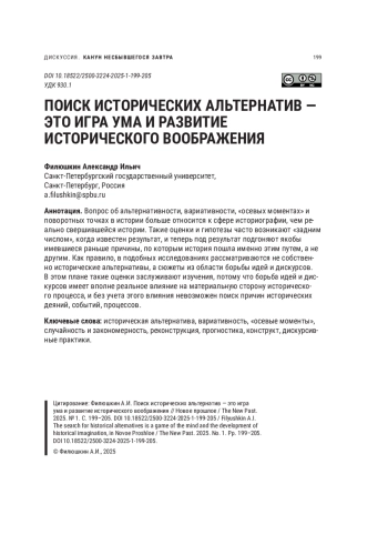 ФИЛЮШКИН А. И. ПОИСК ИСТОРИЧЕСКИХ АЛЬТЕРНАТИВ - ЭТО ИГРА УМА И РАЗВИТИЕ ИСТОРИЧЕСКОГО ВООБРАЖЕНИЯ // НОВОЕ ПРОШЛОЕ. 2025. № 1