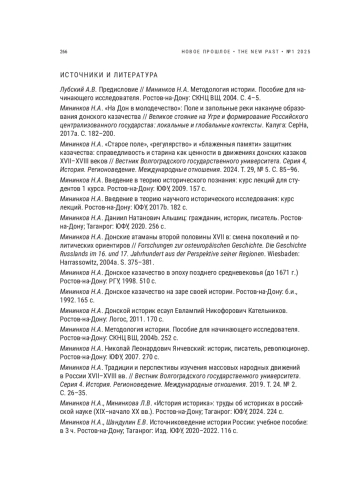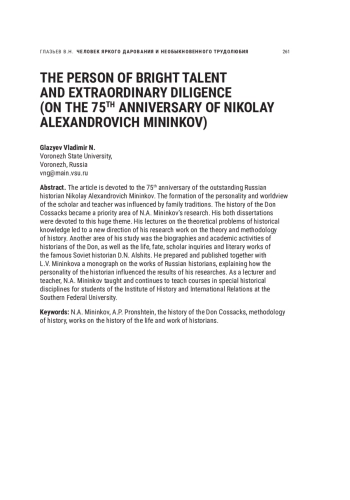 Ключевые фразы: на мининков, ап пронштейн, история донского казачества, методология истории, труды по истории жизни и деятельности историков