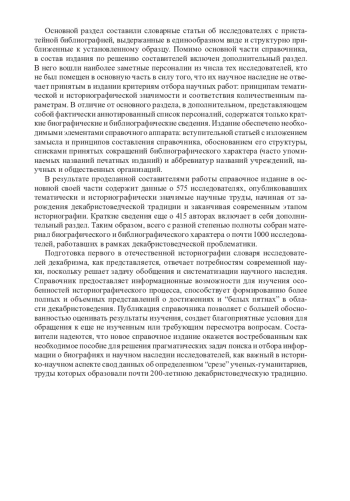 Вместе с тем, труды справочно-энциклопедического характера на сегодняшний момент отстают от развития декабристоведческой историографии и ее библиографирования. Так, несмотря на огромный размах исследовательской традиции, до сих пор отсутствует такой вид фундаментального справочного издания и, одновременно, сводного обобщающего историографического труда, как биобиблиографический словарь исследователей, оставивших след в данной тематической области научных занятий.