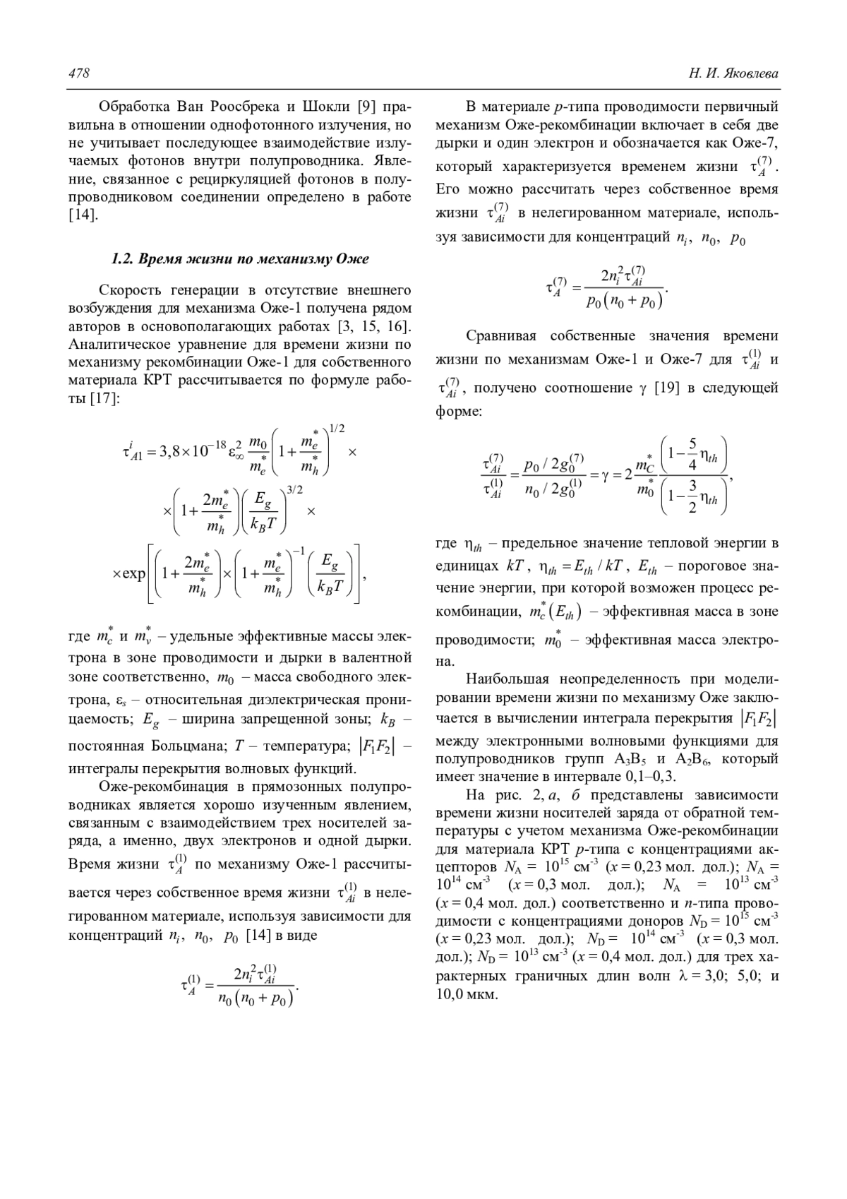 Яковлева Н. И. Анализ времени жизни в узкозонных полупроводниковых слоях HgCdTe 476