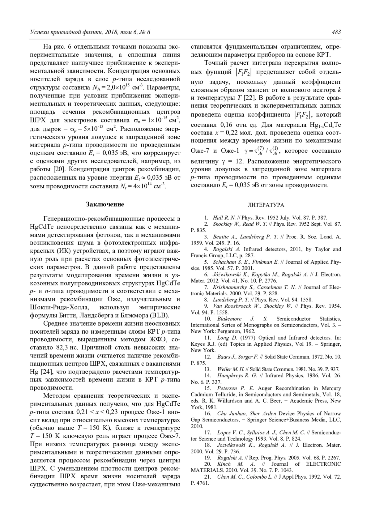 18. Jozwikowski K., Rogalski A. // J. Electron. Mater. 2000. Vol. 29. P. 736.