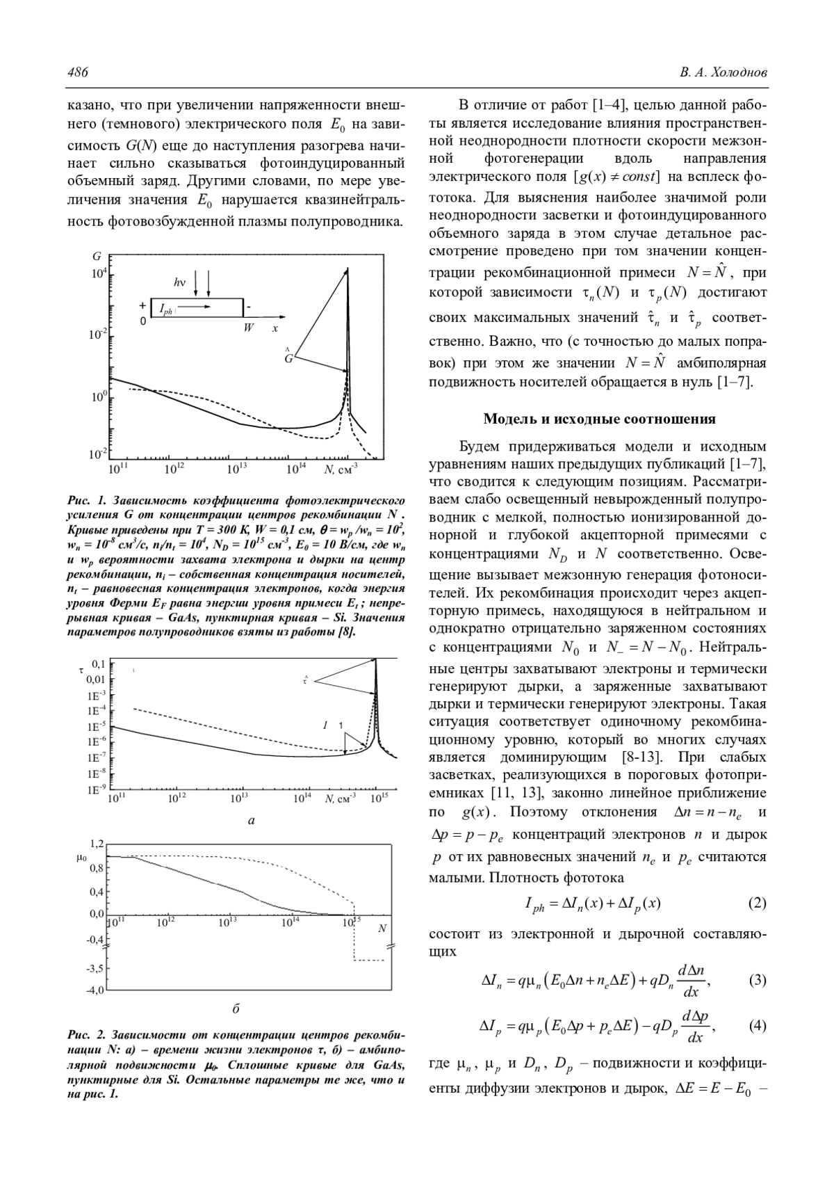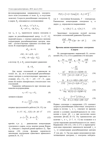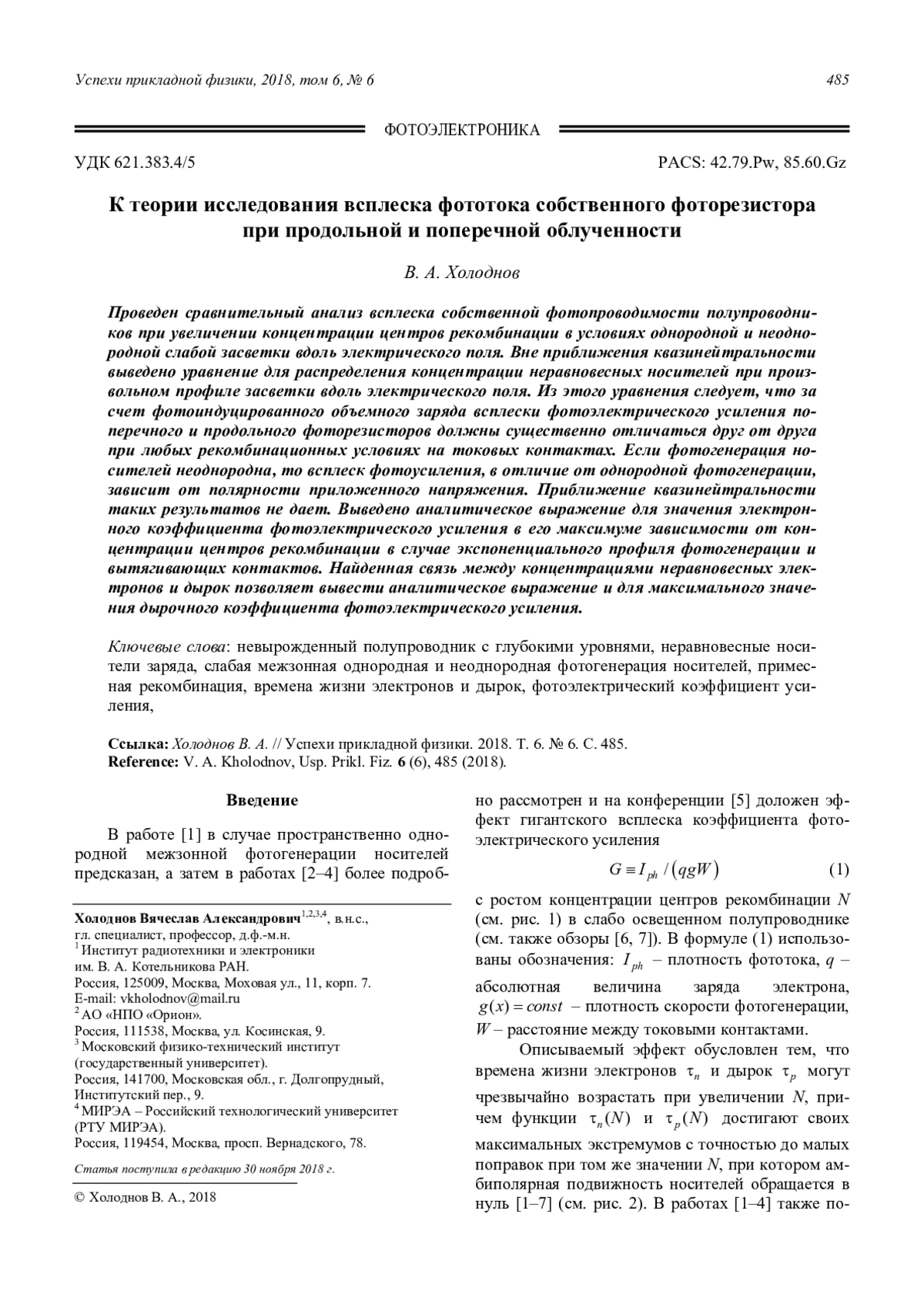 Холоднов В. А. К теории исследования всплеска фототока собственного фоторезистора при продольной и попе-речной облученности 485
