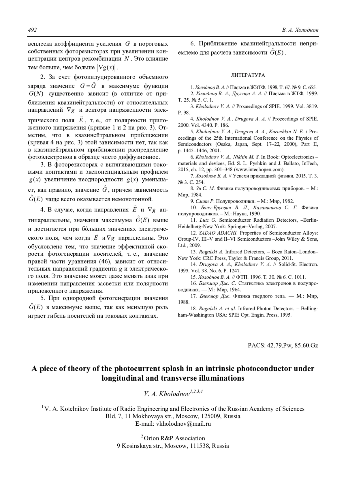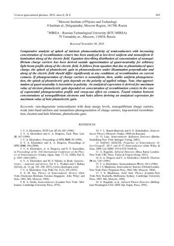 V. A. Kholodnov A piece of theory of the photocurrent splash in an intrinsic photoconductor under longitu-dinal and transverse illuminations 485