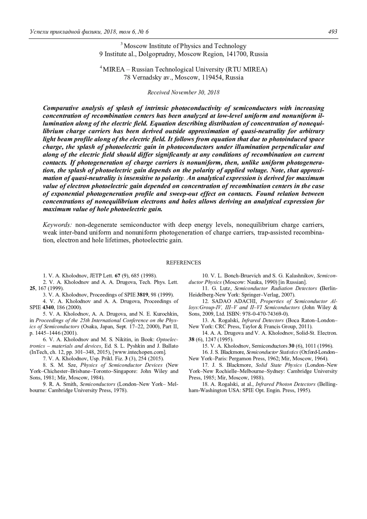 14. Drugova A. A., Kholodnov V. A. // Solid-St. Electron. 1995. Vol. 38. No. 6. P. 1247.