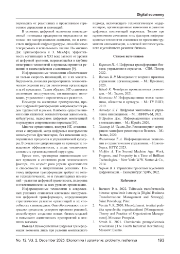 1. Баранов П. А. Цифровая трансформация бизнеса: управление и стратегия. - СПб.: Питер, 2022.
