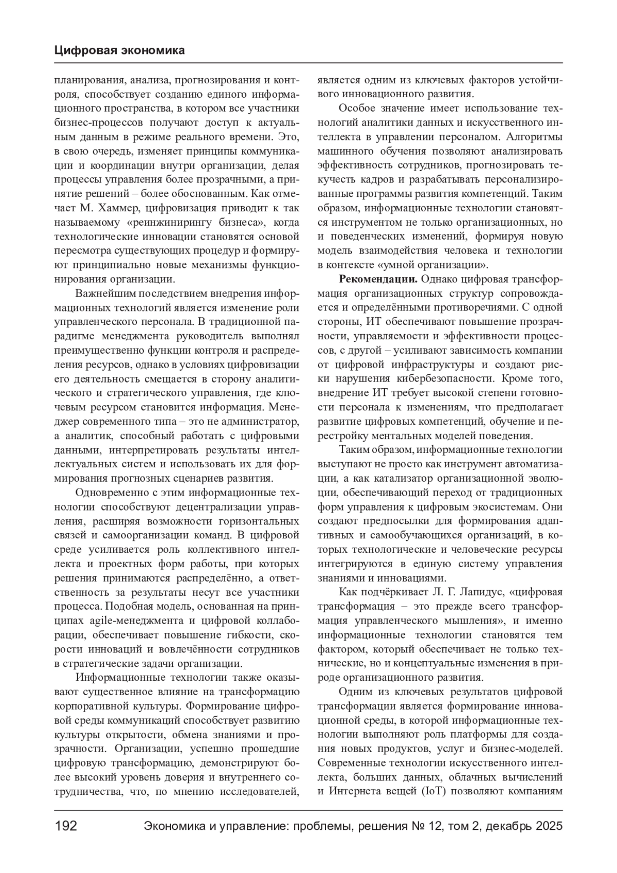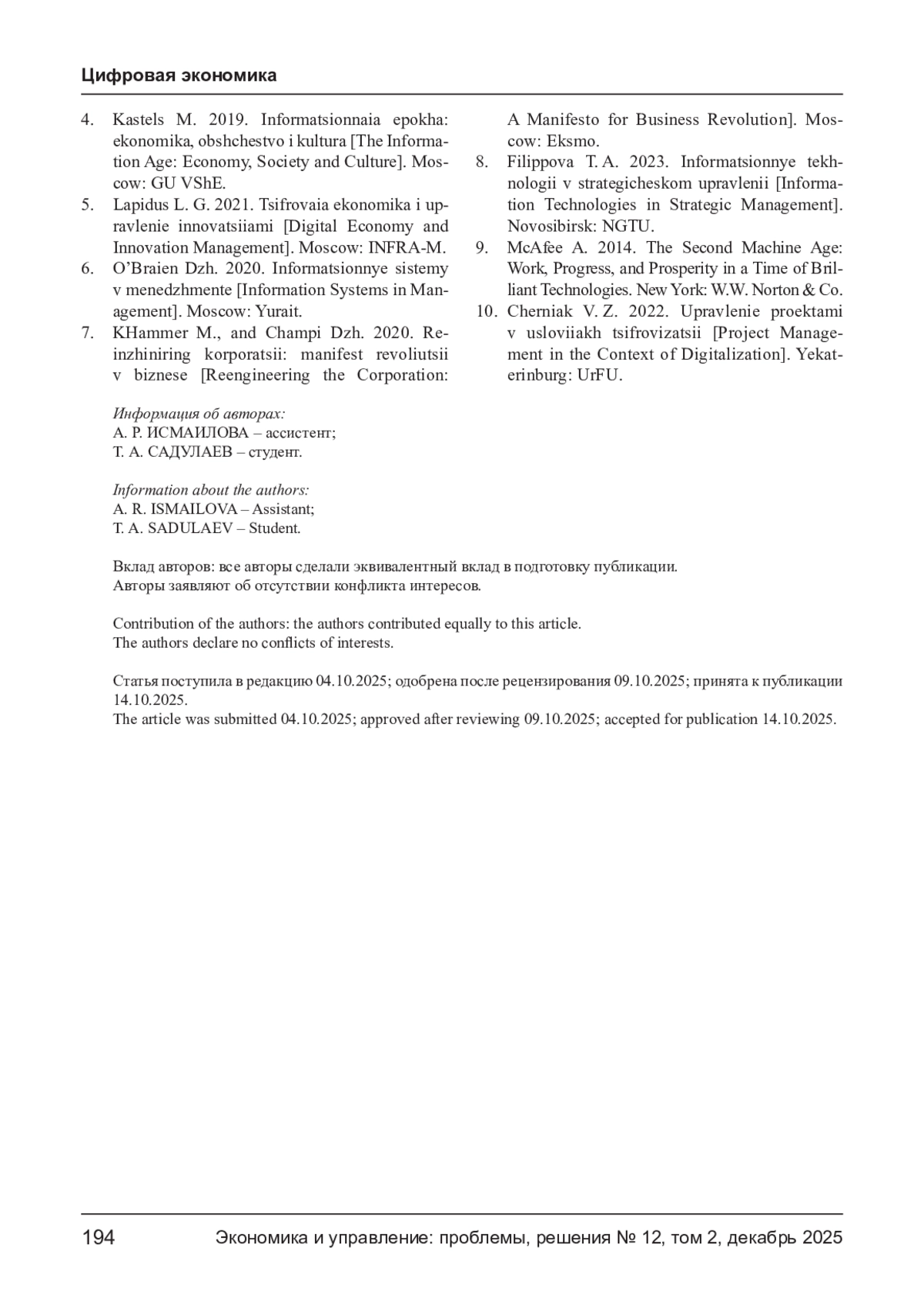 5. Лапидус Л. Г. Цифровая экономика и управление инновациями. - М.: ИНФРА-М, 2021.