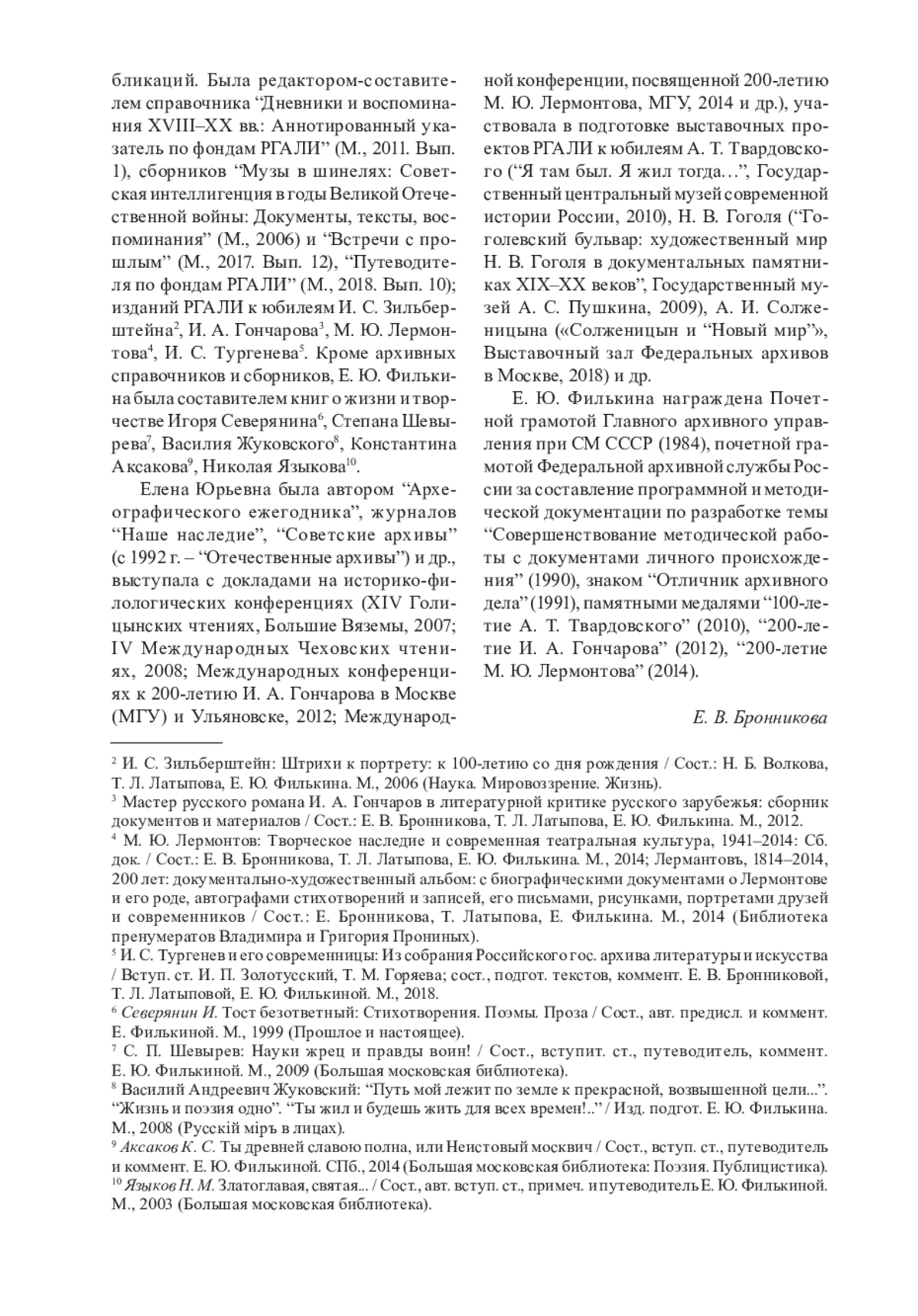 1. Е. Ю. Филькина: [некролог] // Отечественные архивы. 2020. №4. С. 136.