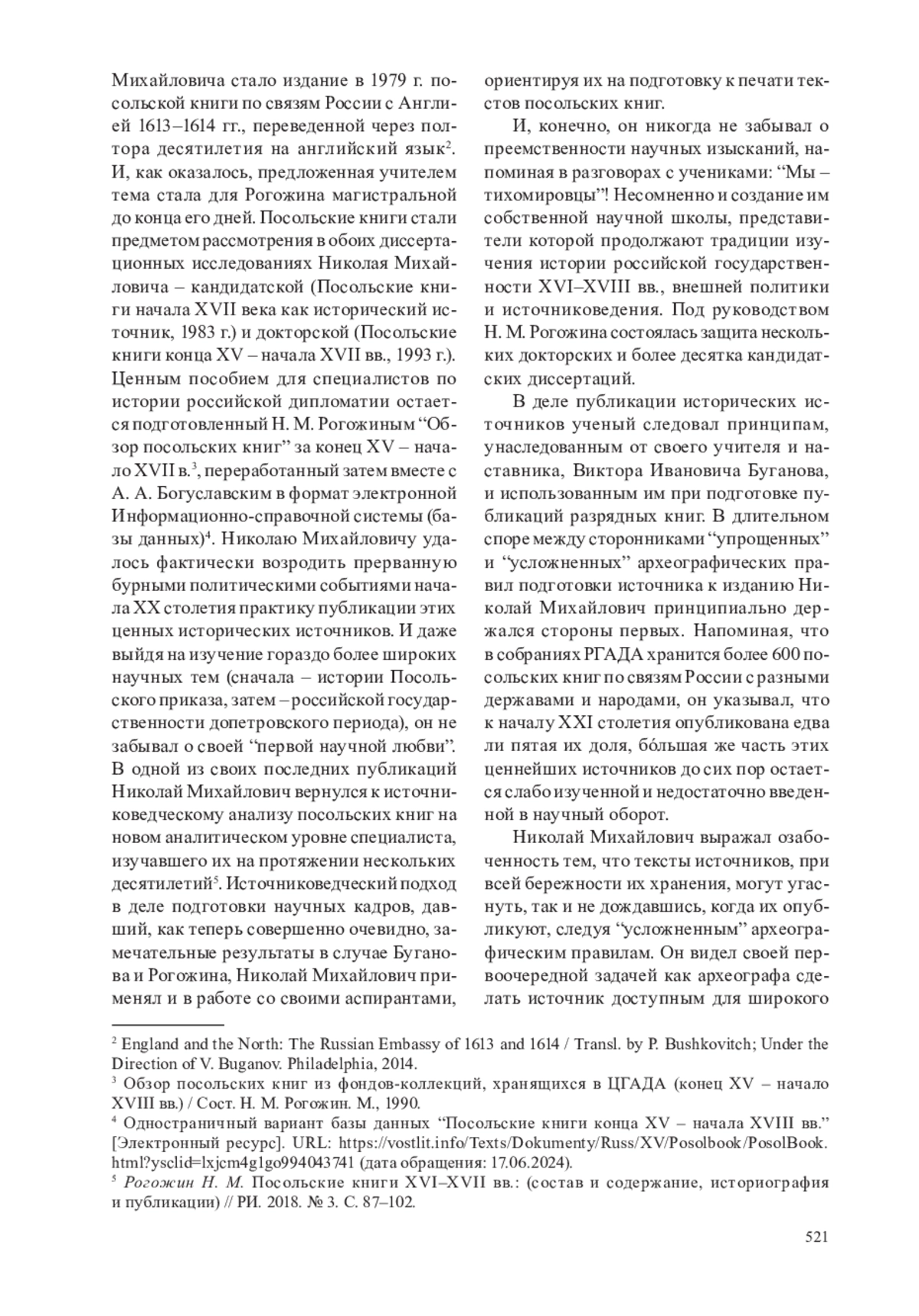 5. Рогожин Н. М. Посольские книги ХѴI-ХѴII вв.: (состав и содержание, историография и публикации) // Российская история. 2018. № 3. С. 87-102. EDN: XNSSZV