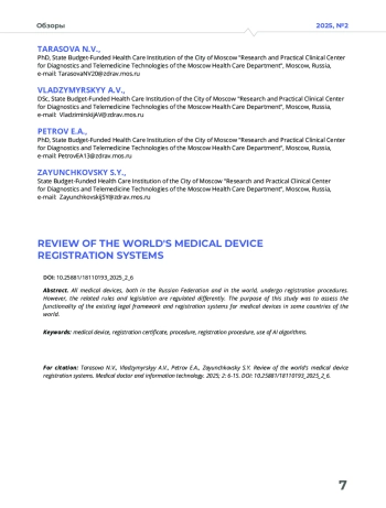 Все изделия медицинского назначения, как в Российской Федерации, так и в мире, проходят процедуры регистрации. Однако связанные с этим нормы и законодательство регулируются по-разному. Целью данного исследования явилась оценка функциональных возможностей существующей правовой базы и систем регистрации изделий медицинского назначения в некоторых странах мира.