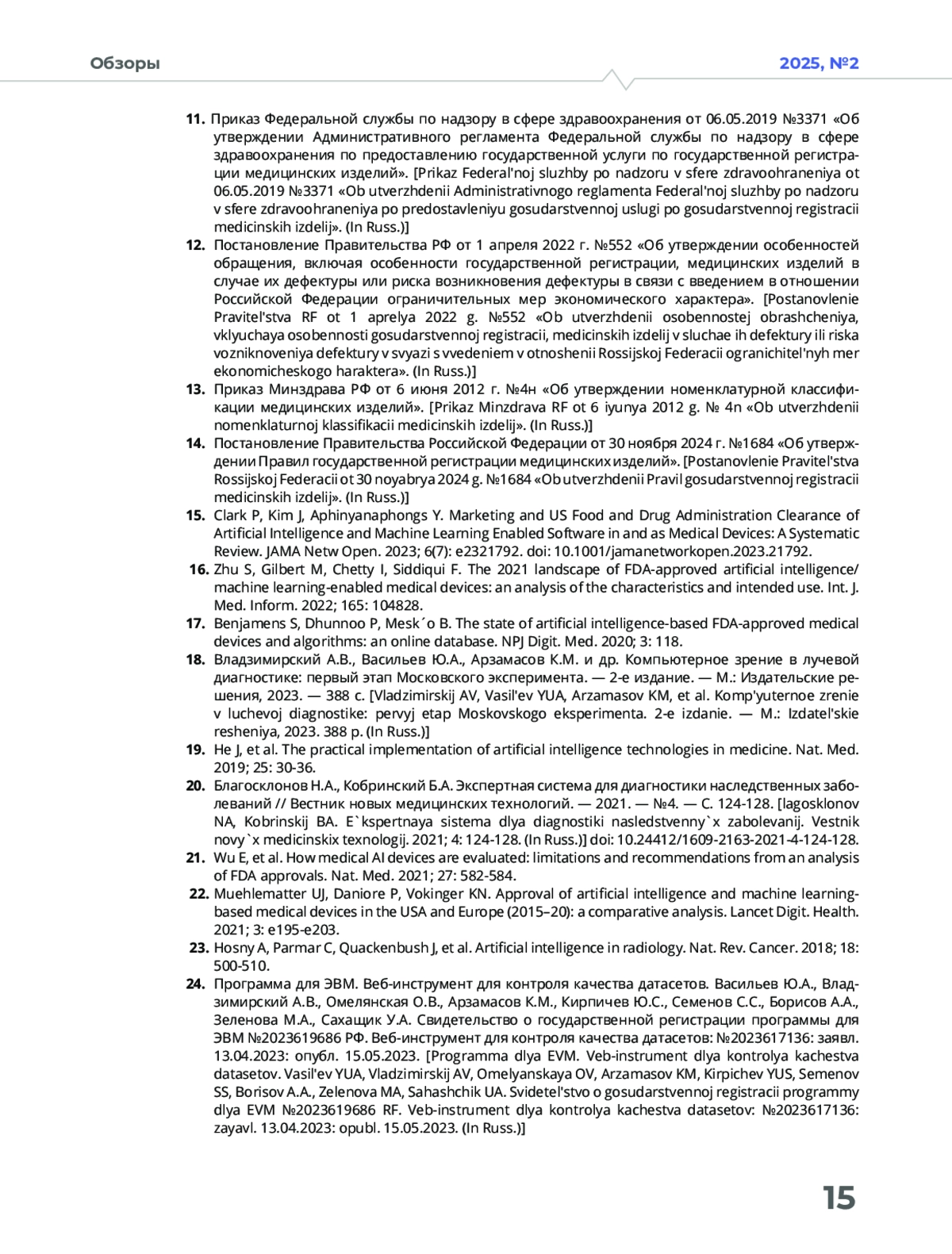 14. Постановление Правительства Российской Федерации от 30 ноября 2024 г. № 1684 “Об утверждении Правил государственной регистрации медицинских изделий”.