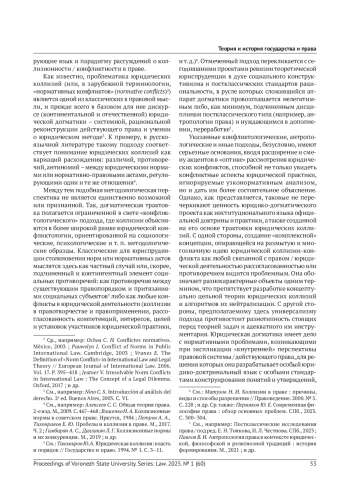 Статья: КОНЦЕПТУАЛИЗАЦИЯ ЮРИДИЧЕСКИХ КОЛЛИЗИЙ: НЕКОТОРЫЕ ТЕОРЕТИКОМЕТОДОЛОГИЧЕСКИЕ РАЗЛИЧЕНИЯ (2025)