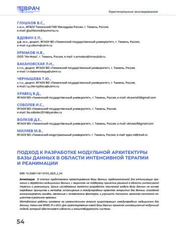 Методология работы основана на сравнительном анализе существующих международных медицинских баз данных, таких как MIMIC-IV и eICU. Для проектирования новой базы данных применен инновационный модульный подход, который обеспечивает гибкость и масштабируемость системы.