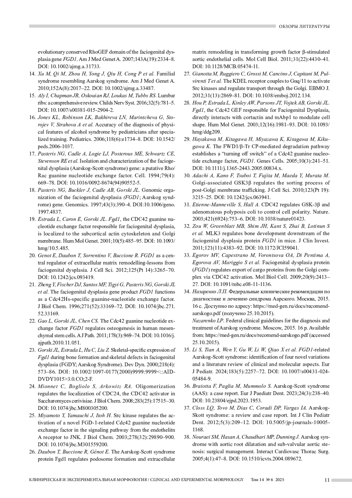 36. Li S, Tian A, Wen Y, Gu W, Li W, Qiao X et al. FGD1 -related Aarskog-Scott syndrome: identification of four novel variations and a literature review of clinical and molecular aspects. Eur J Pediatr. 2024;183(5):2257-72. DOI: 10.1007/s00431-024-05484-9.
