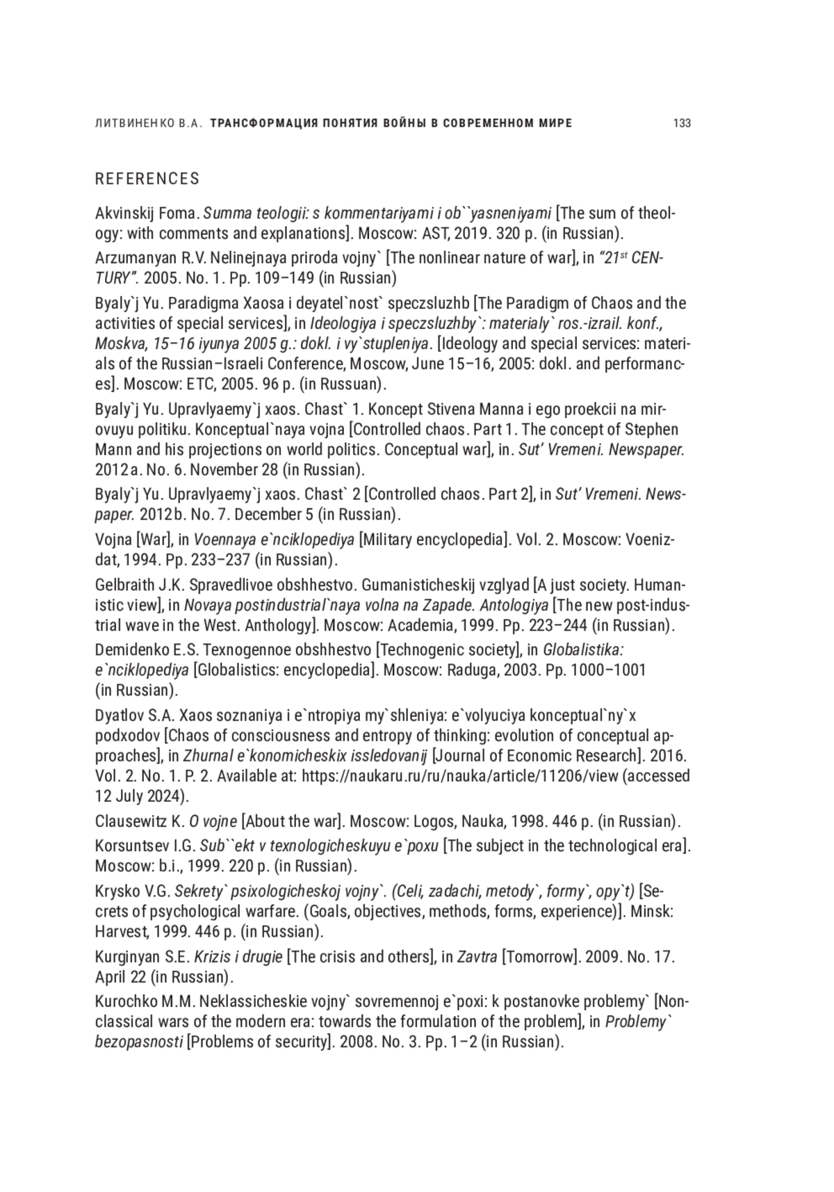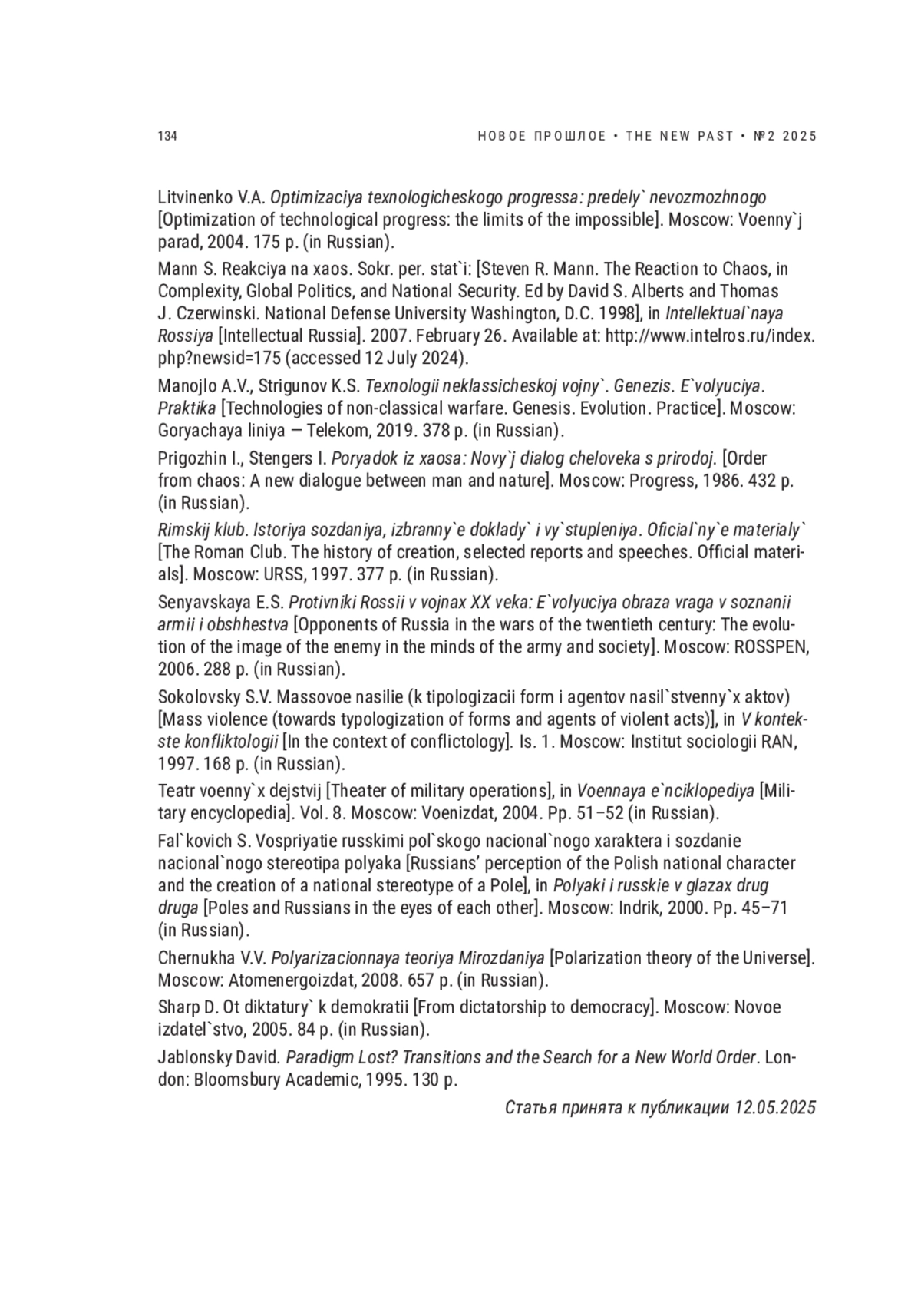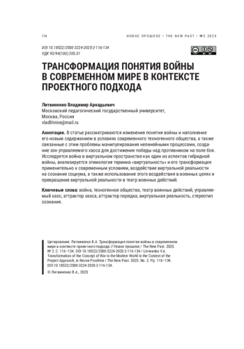 ЛИТВИНЕНКО В. А. ТРАНСФОРМАЦИЯ ПОНЯТИЯ ВОЙНЫ В СОВРЕМЕННОМ МИРЕ В КОНТЕКСТЕ ПРОЕКТНОГО ПОДХОДА // НОВОЕ ПРОШЛОЕ. 2025. № 2