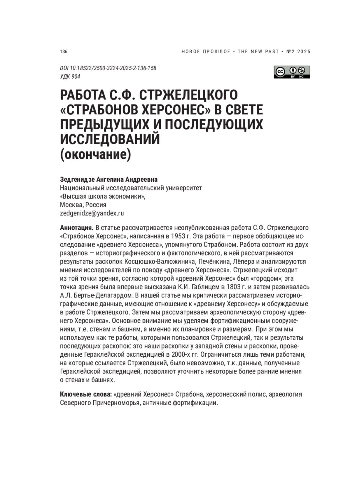 19. Зедгенидзе А.А. “Древний Херсонес” Страбона. Результаты исследований 1985-1990 гг. // Вестник древней истории. 2016. № 76/3. С. 597-625. EDN: WLSGAR