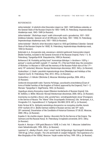 47. Inostrantsy na sluzhbe u Rossii: elita “prishel’tsev”: entsiklopedicheskii slovar’ [Foreigners in the Service of Russia: The “Aliens” Elite: Encyclopedic Dictionary]. Eds. Vartumyan, A.A., Vinogradov S.V., Gaynutdinova E.V. Pyatigorsk: RIA-KMV, 2018. 687 p. (in Russian).