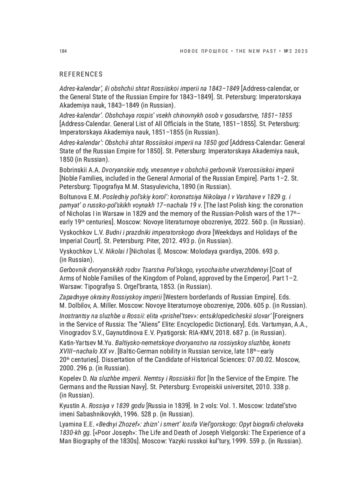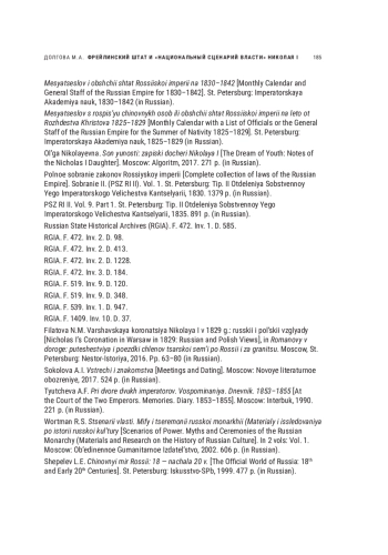 44. Vyskochkov L.V. Nikolai I [Nicholas I]. Moscow: Molodaya gvardiya, 2006. 693 p. (in Russian).