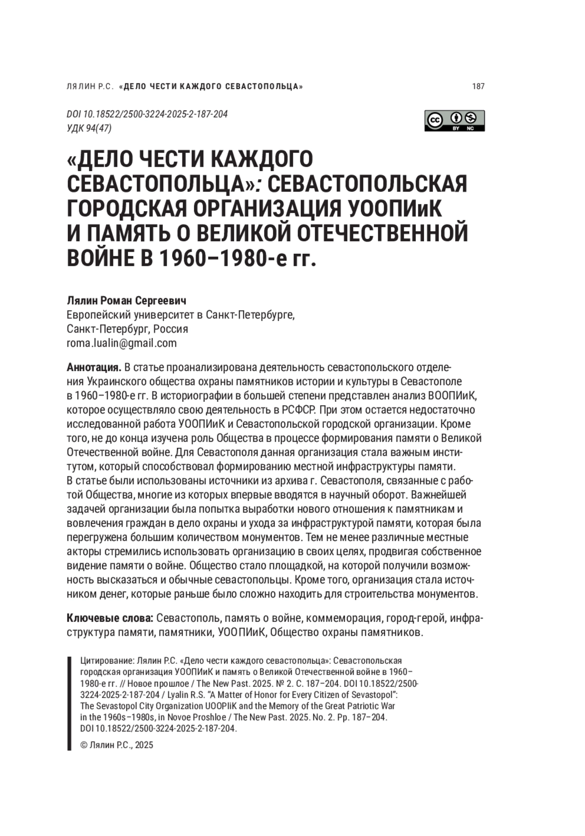 93. Neplyuev P.A. Publichnaya istoriya “po-sovetski”. Regional’nye otdeleniya Vserossijskogo obshchestva ohrany pamyatnikov istorii i kul’tury: “byurokraticheskie pravila igry” i istoriko-kul’turnyj aktivizm [Public history “in the Soviet way”. Regional branches of the All-Russian Society for the Protection of Monuments of History and Culture: “bureaucratic rules of the game” and historical and cultural activism], in Vestnik Permskogo universiteta. Istoriya. 2022. No. 3(58) Pp. 79-93 (in Russian). EDN: EYOJYU