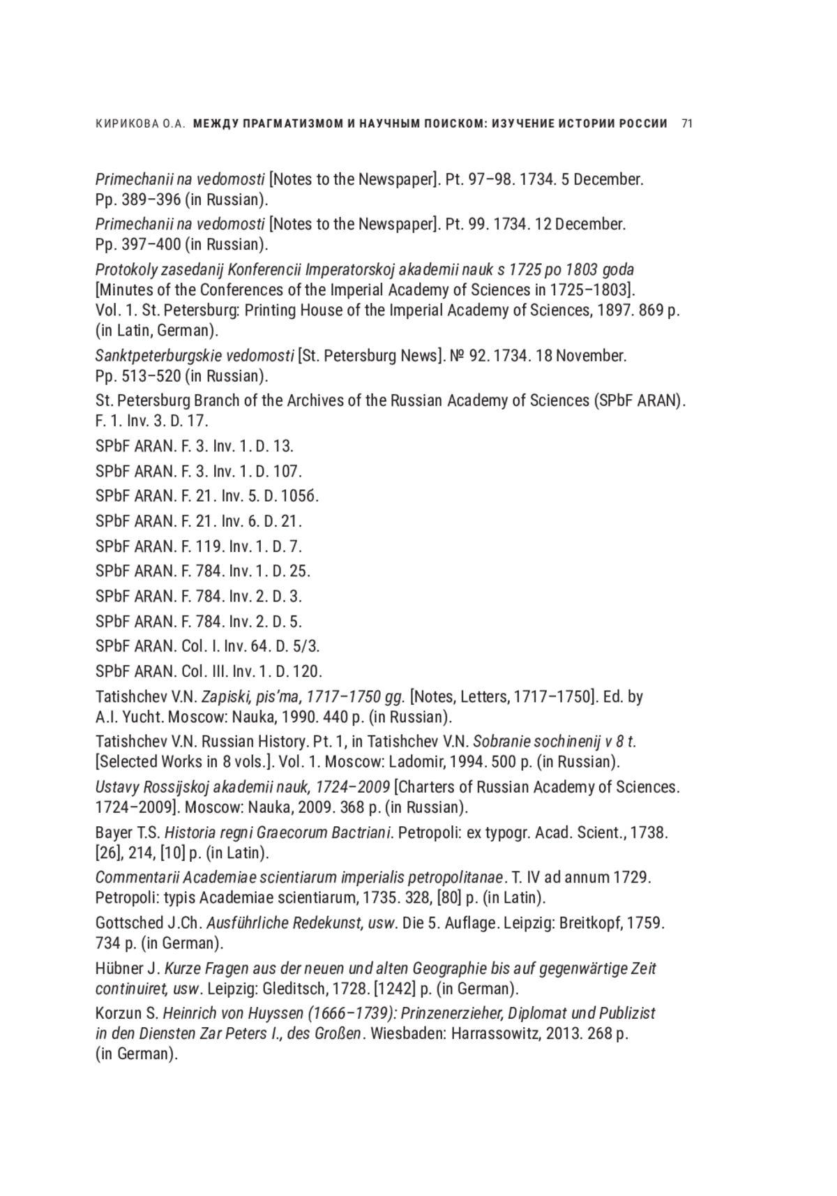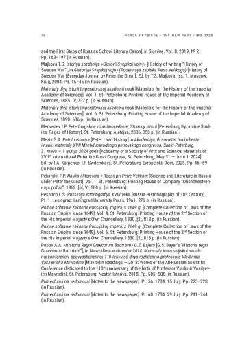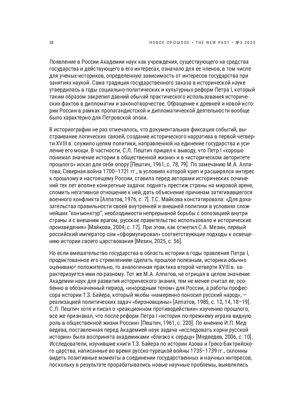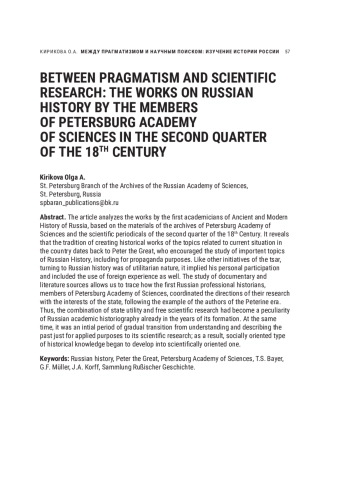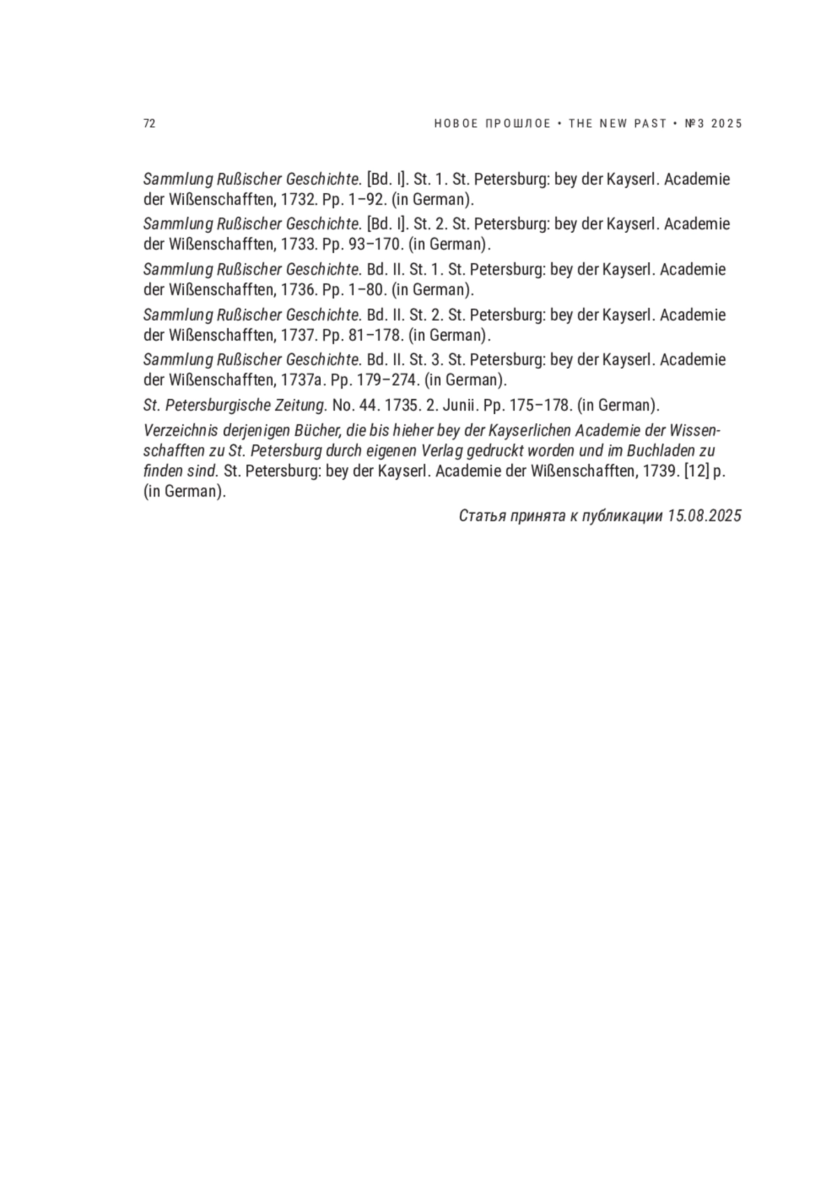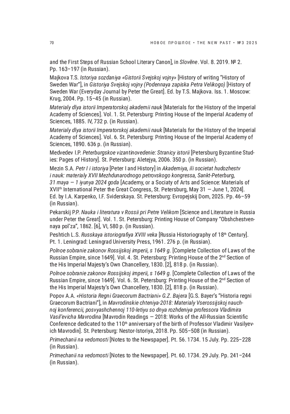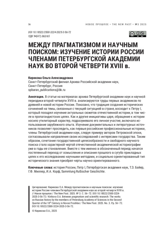 КИРИКОВА О. А. МЕЖДУ ПРАГМАТИЗМОМ И НАУЧНЫМ ПОИСКОМ: ИЗУЧЕНИЕ ИСТОРИИ РОССИИ ЧЛЕНАМИ ПЕТЕРБУРГСКОЙ АКАДЕМИИ НАУК ВО ВТОРОЙ ЧЕТВЕРТИ XVIII В // НОВОЕ ПРОШЛОЕ. 2025. № 3