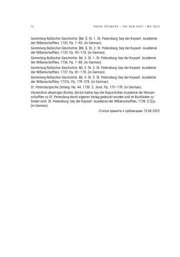 Статья: МЕЖДУ ПРАГМАТИЗМОМ И НАУЧНЫМ ПОИСКОМ: ИЗУЧЕНИЕ ИСТОРИИ РОССИИ ЧЛЕНАМИ ПЕТЕРБУРГСКОЙ АКАДЕМИИ НАУК ВО ВТОРОЙ ЧЕТВЕРТИ XVIII В (2025)