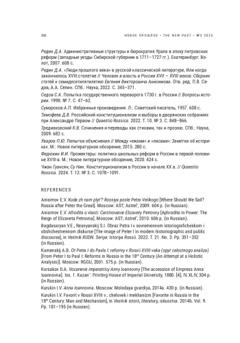 52. Chzhan Guansyan, Su Nin. Konstitucionalizm v Rossii v nachale XX v. [Constitutionalism in Russia at the beginning of the 20th Century], in Quaestio Rossica. 2024. Vol. 12. No. 3. Pp. 1078-1091 (in Russian).