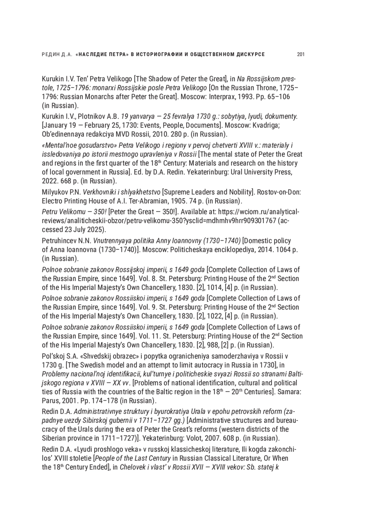 29. Bagdasaryan V.E., Resnyanskij S.I. Obraz Petra I v sovremennom istoriograficheskom i obshchestvennom diskurse [The image of Peter I in modern historiographic and public discourse], in Vestnik RUDN. Seriya: Istoriya Rossii. 2022. T. 21. No. 3. Pp. 351-352 (in Russian).