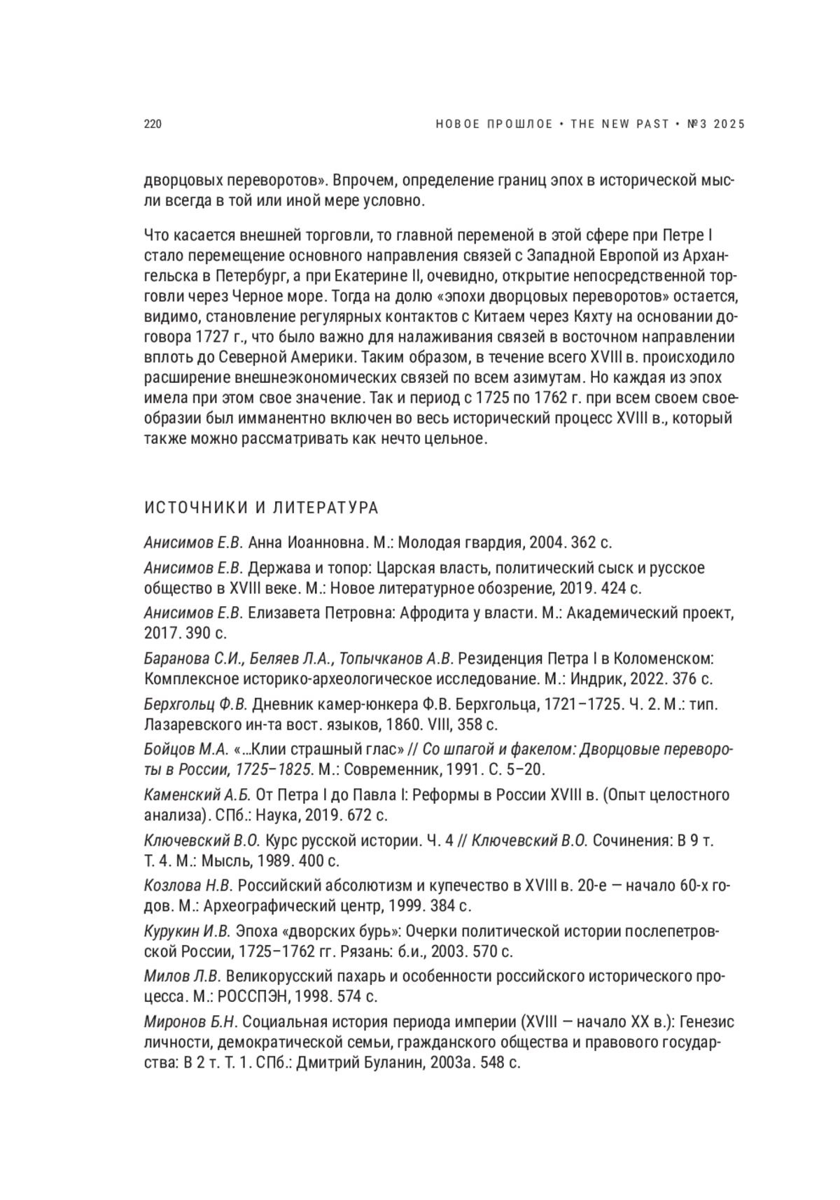 25. Kamenskij A.B. Ot Petra I do Pavla I: Reformy v Rossii XVIII veka (opyt celostnogo analiza) [From Peter I to Paul I: Reforms in Russia in the 18th Century (An Attempt at a Holistic Analysis)]. St. Petersburg: Nauka, 2019. 672 p. (in Russian).