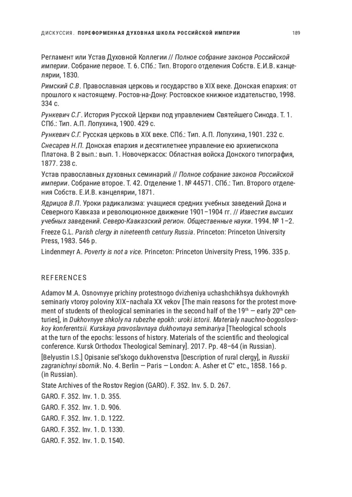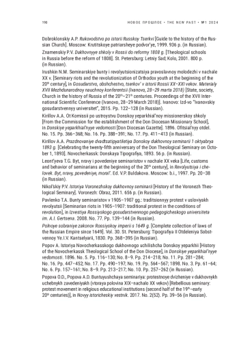 15. Никольский П.В. История Воронежской духовной семинарии. Воронеж: Образ, 2011. 656 с. EDN: NGNDDV