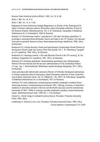 30. Freeze G.L. Parish clergy in nineteenth century Russia. Princeton: Princeton University Press, 1983. 546 р.