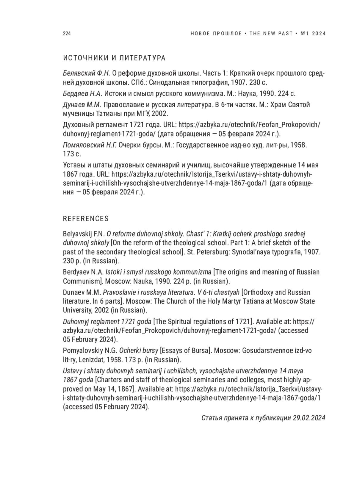 6. Уставы и штаты духовных семинарий и училищ, высочайше утвержденные 14 мая 1867 года. URL: https://azbyka.ru/otechnik/Istorija_Tserkvi/ustavy-i-shtaty-duhovnyh-seminarij-i-uchilishh-vysochajshe-utverzhdennye-14-maja-1867-goda/1 (дата обращения - 05 февраля 2024 г.).
