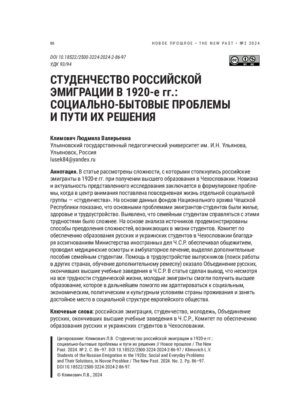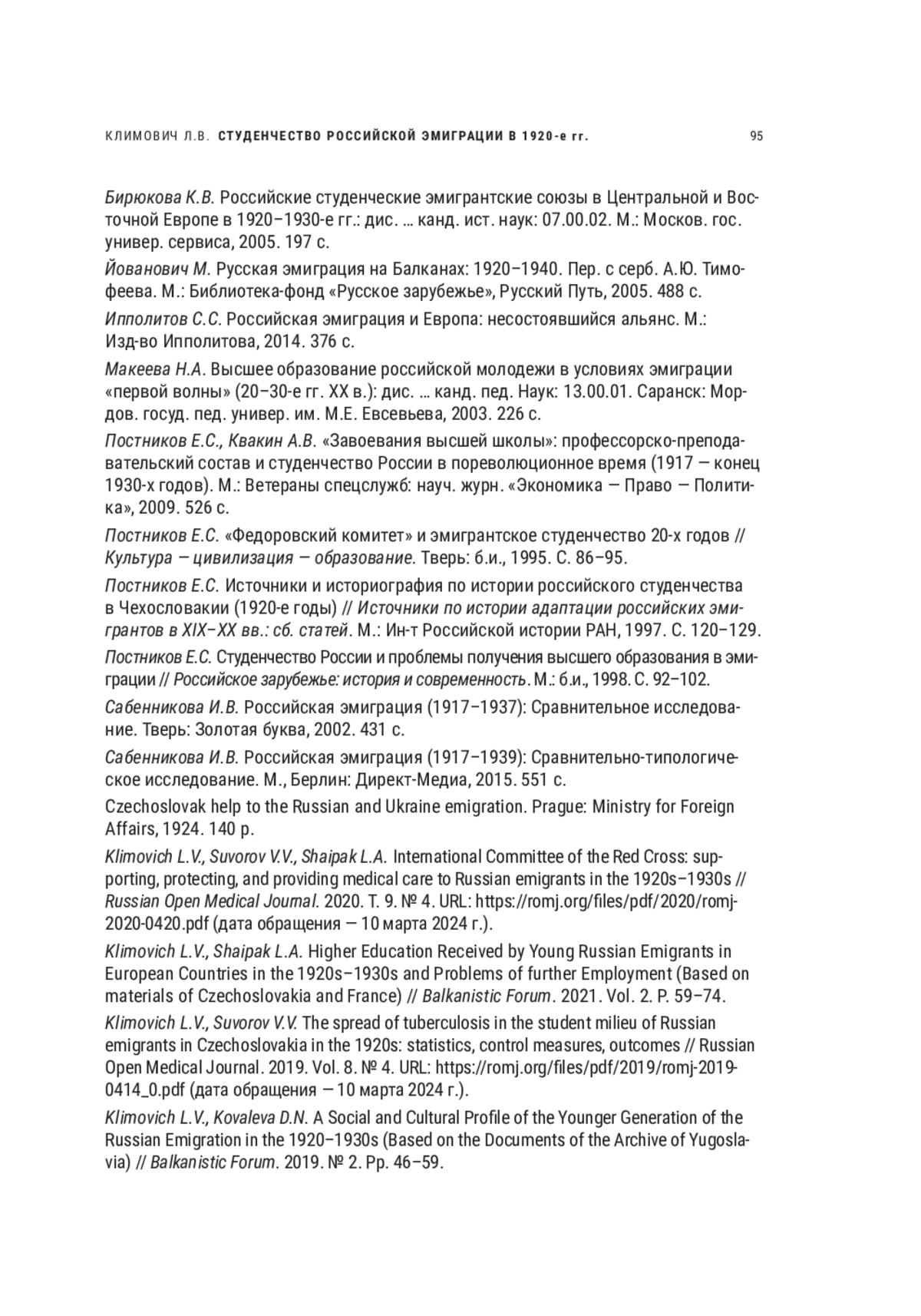 16. Klimovich L.V., Kovaleva D.N. A Social and Cultural Profile of the Younger Generation of the Russian Emigration in the 1920-1930s (Based on the Documents of the Archive of Yugoslavia) // Balkanistic Forum. 2019. № 2. Рp. 46-59. EDN: NRJAQW