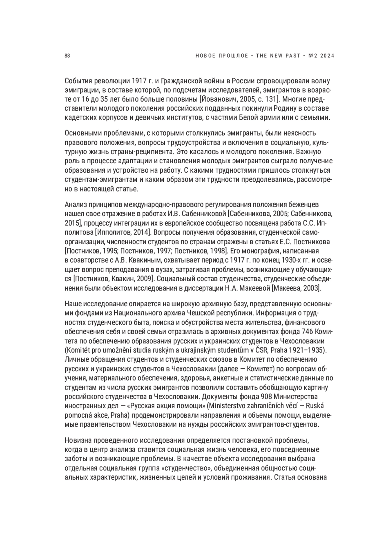 9. Постников Е.С. Студенчество России и проблемы получения высшего образования в эмиграции // Российское зарубежье: история и современность. М.: б.и., 1998. С. 92-102.