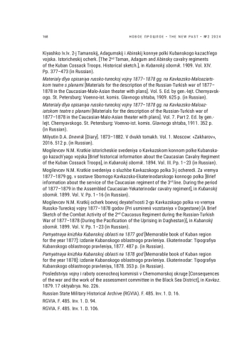 30. Шкуро В.И. Участие горцев-добровольцев Кубанской области в Русско-турецкой войне 1877-1878 годов // Кубанский сборник. 2007. Т. II (23). С. 402-429.