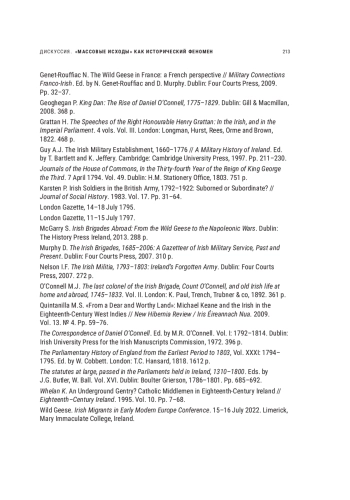 24. McGarry S. Irish Brigades Abroad: From the Wild Geese to the Napoleonic Wars. Dublin: The History Press Ireland, 2013. 288 p.