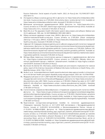2. Голубев Н.А., Поликарпов А.В., Огрызко Е.В. Исторические аспекты методологии сбора и обработки медико-статистической информации в Российской Федерации // Социальные аспекты здоровья населения. - 2022.
