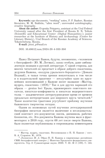 Ключевые фразы: эго-документы, «рабочие» записи, п п ба- жов, РУССКАЯ ЛИТЕРАТУРА, м м бахтин, «чужое слово», непро- явленная автобиография, ТВОРЧЕСКАЯ БИОГРАФИЯ
