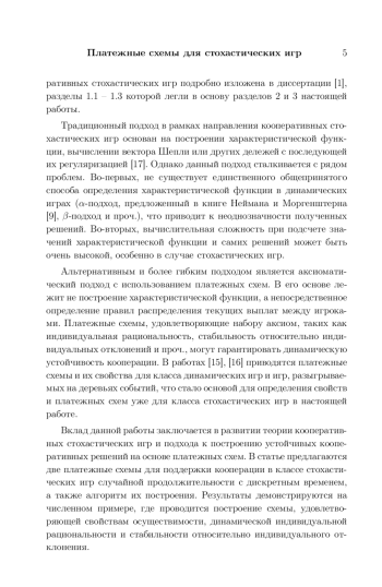 Работа посвящена стохастическим играм случайной продолжительности в кооперативной постановке и проблеме устойчивости кооперации. Продолжительность игры конечна и определена заданным распределением вероятностей. Построение кооперативного поведения реализуется с помощью механизма платежных схем: определяется новая стохастическая игра с модифицированными функциями выигрыша, которые удовлетворяют некоторым положительным свойствам устойчивости кооперации. В работе предложены две платежные схемы для поддержки кооперации в классе стохастических игр с дискретным временем. Платежные схемы строятся на основе свойств динамической индивидуальной рациональности, стабильности относительно индивидуального отклонения, эффективности и др.