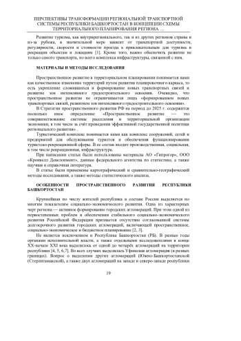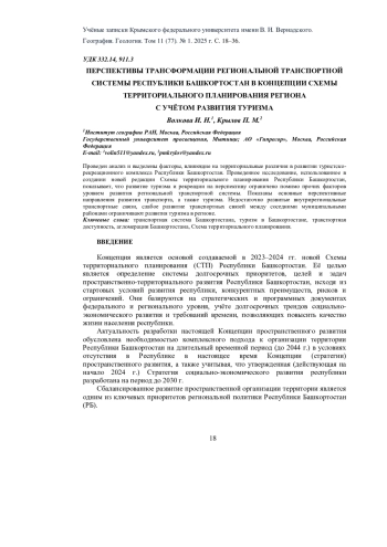 Проведен анализ и выделены факторы, влияющие на территориальные различия в развитии туристско- рекреационного комплекса Республики Башкортостан. Проведенное исследование, использованное в создании новой редакции Схемы территориального планирования Республики Башкортостан, показывает, что развитие туризма и рекреации на перспективу ограничено помимо прочих факторов уровнем развития региональной транспортной системы. Показаны основные перспективные направления развития транспорта, а также туризма. Недостаточно развитые внутрирегиональные транспортные связи, слабое развитие транспортных связей между соседними муниципальными районами ограничивают развития туризма в регионе.