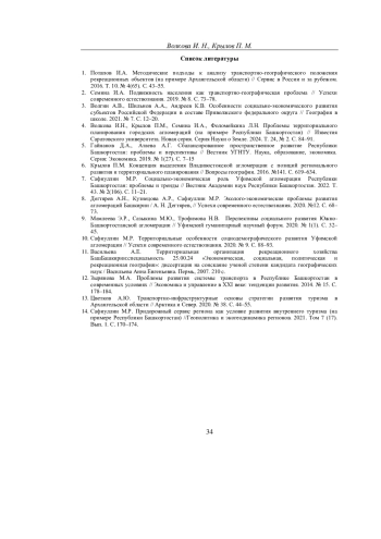 4. Волкова И.Н., Крылов П.М., Семина И.А., Фоломейкина Л.Н. Проблемы территориального планирования городских агломераций (на примере Республики Башкортостан) // Известия Саратовского университета. Новая серия. Серия Науки о Земле. 2024. Т. 24, № 2. С. 84-91. EDN: YJBMEU
