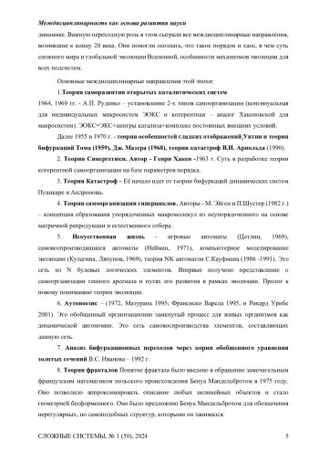 Дано обоснование пути развития научного познания на основе междисциплинарных исследований. Развитие теории самоорганизации, синергетики, теории фракталов, теории сложных систем дает общие закономерности в естественных и социальных науках. Показана общность и различие этих направлений и их перспективы.