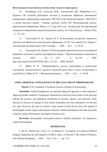 Статья: ИСПОЛЬЗОВАНИЕ ИСКУССТВЕННОГО ИНТЕЛЛЕКТА В АНАЛИЗЕ ТЕРМОГРАММ (2024)