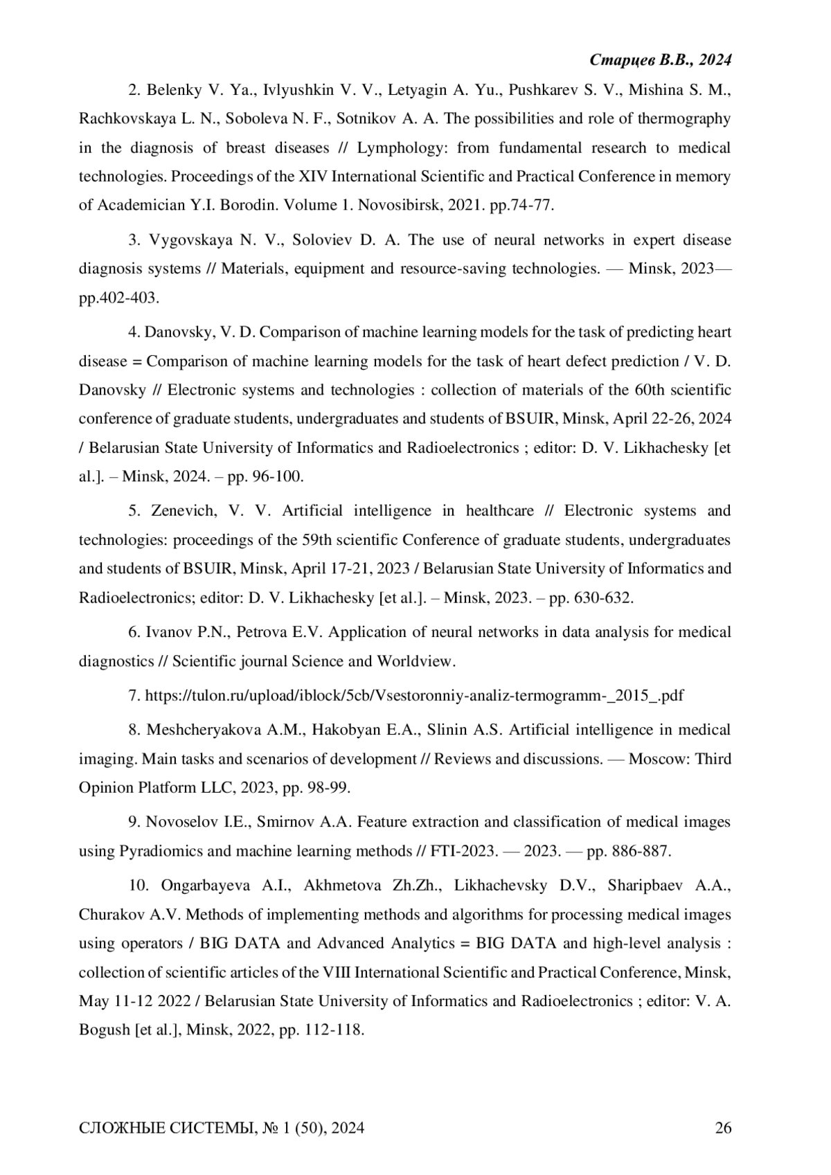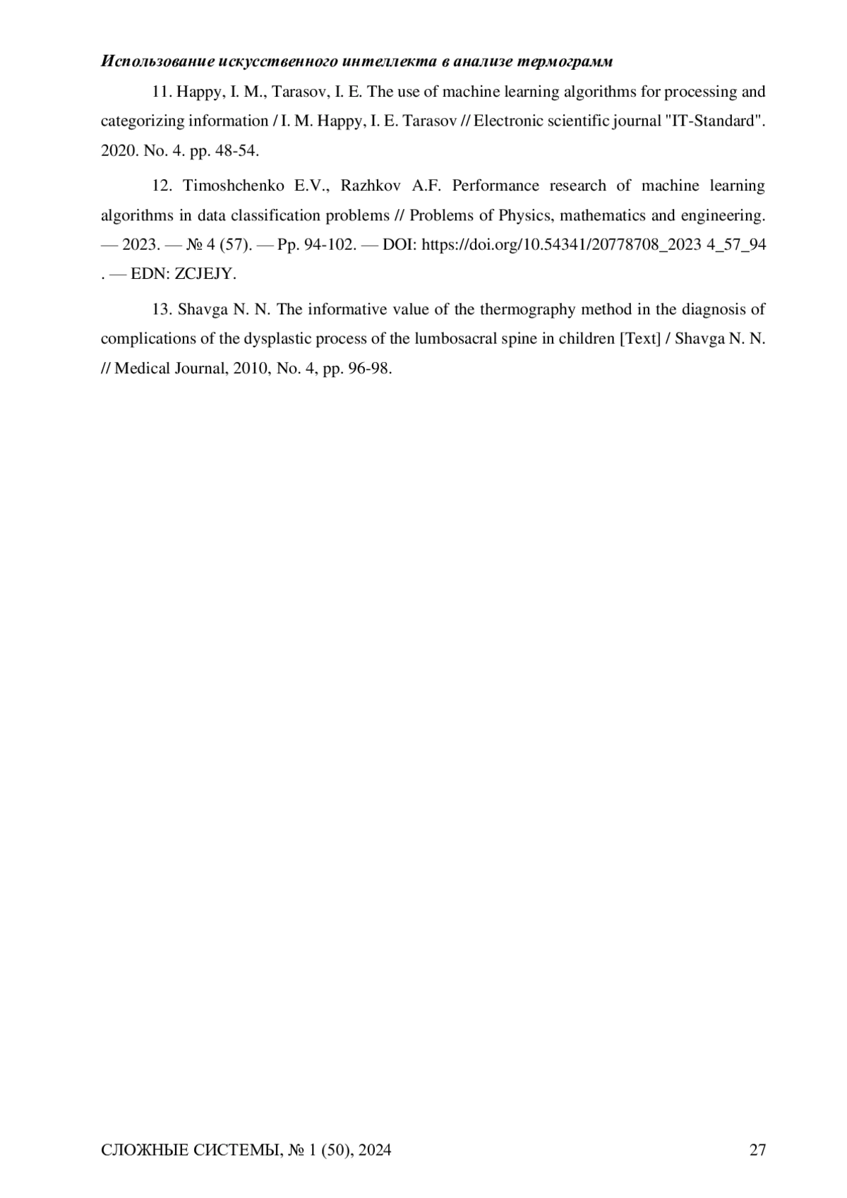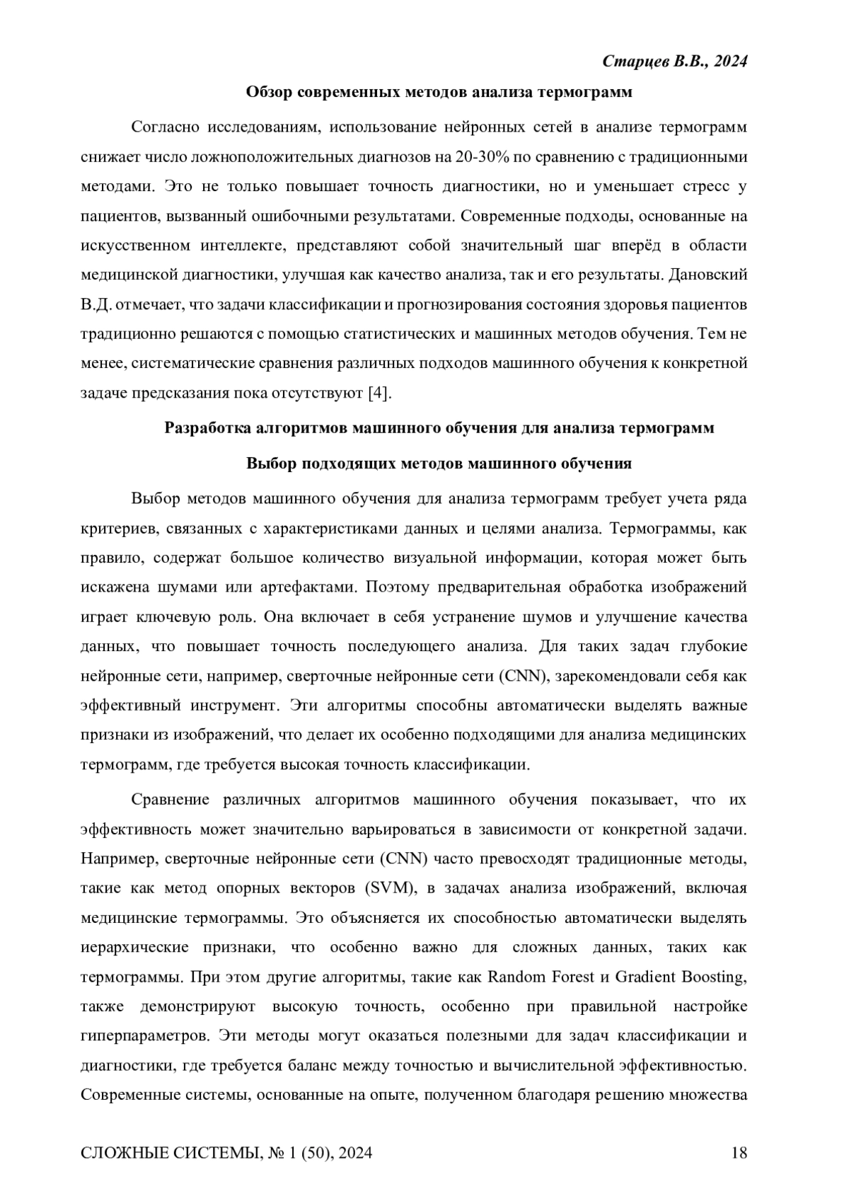 СТАРЦЕВ В. В. ИСПОЛЬЗОВАНИЕ ИСКУССТВЕННОГО ИНТЕЛЛЕКТА В АНАЛИЗЕ ТЕРМОГРАММ // СЛОЖНЫЕ СИСТЕМЫ. 2024. № 1 (50)