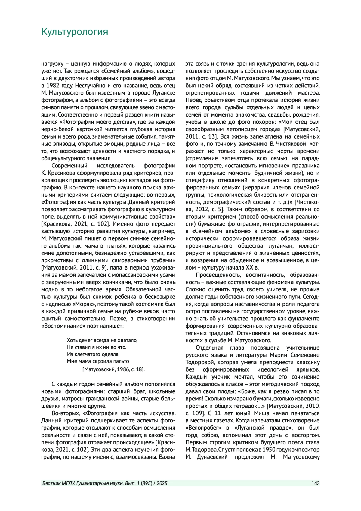 Творчество известного луганчанина Михаила Мату совского отмечено исследователями различных отраслей отечественной науки. Однако эти публикации в основном носят эпизодический характер и в своей структуре не имеют научной глубины, соответствующей методологии изучения жанра мемуаристики.